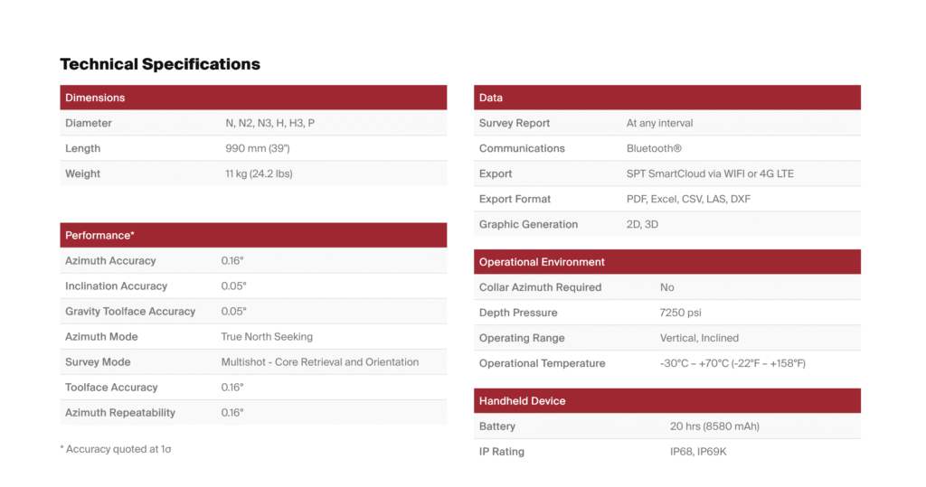 Accuracy that matters: 0.16° azimuth and 0.05° inclination at any angle. No manual mistakes. No wasted time. Just faster, better geological decision-making