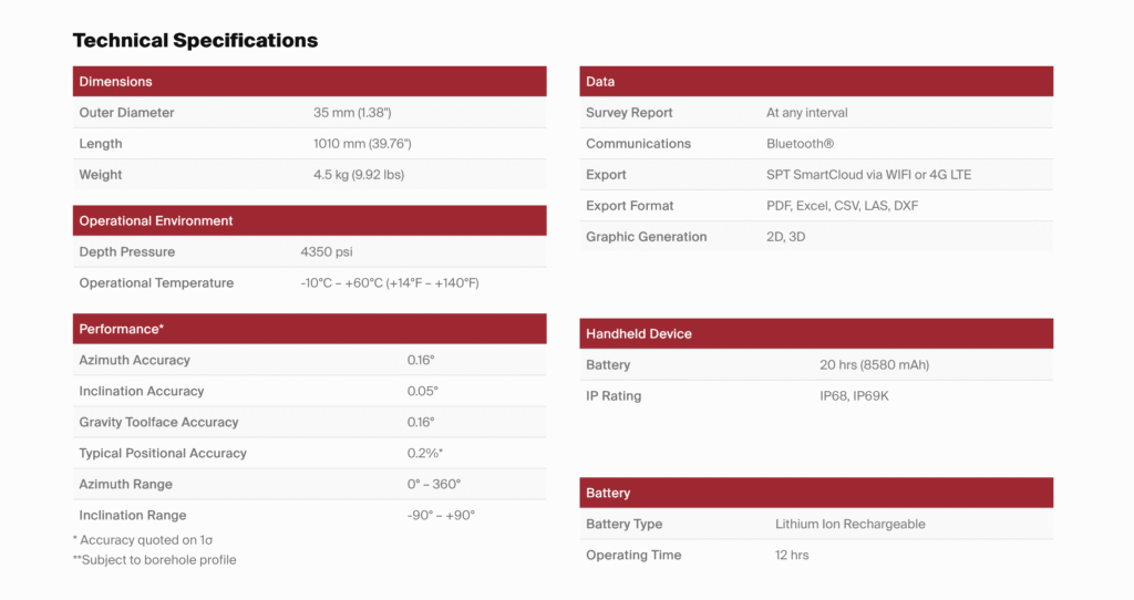 Dilengkapi dengan baterai lithium-ion yang menyediakan daya untuk survei aktif selama 12 jam, alat ini ideal untuk shift kerja yang panjang. Konstruksi yang kompak dan tangguh memastikan kinerja yang andal bahkan dalam kondisi pengeboran yang ekstrem.
